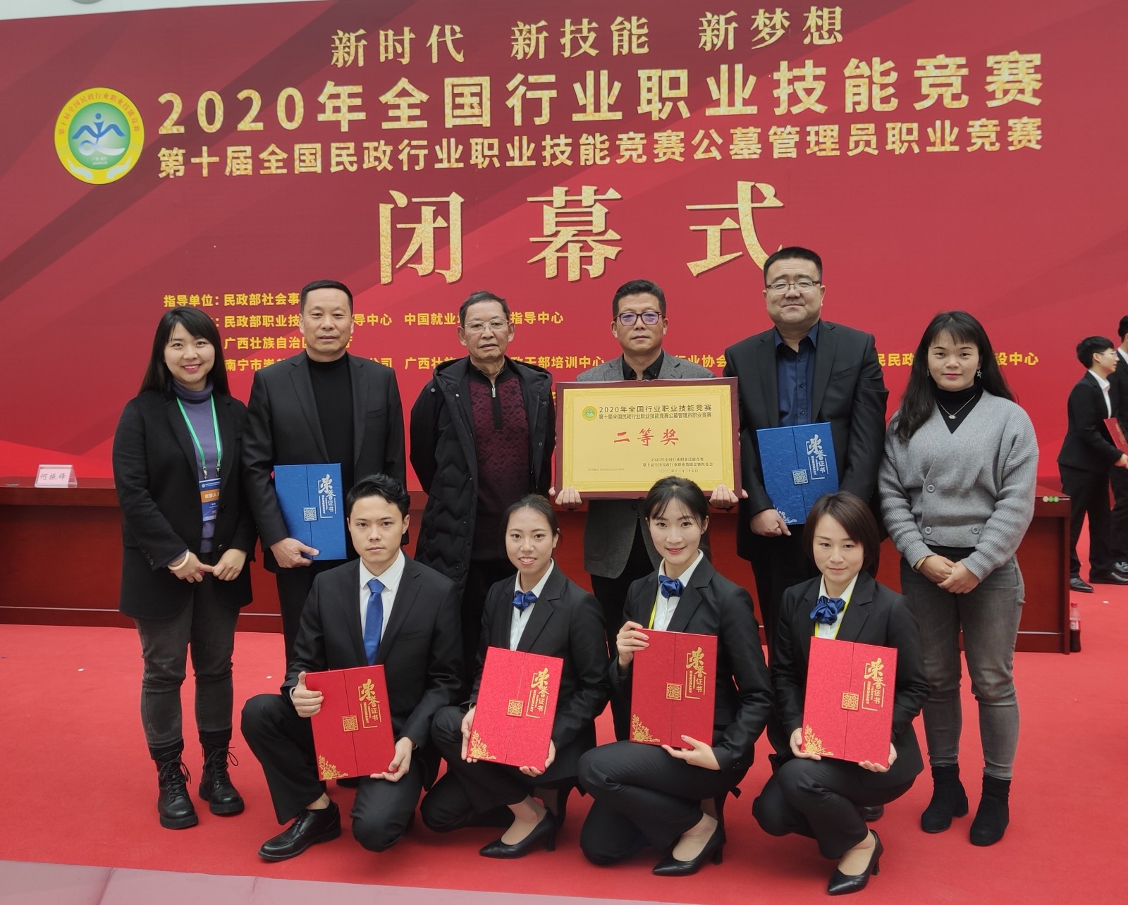 12月21日至12月25日,2020年全国行业职业技能竞赛——第十届全国民政行业职业技能竞赛公墓管理员竞赛在广西南宁举办。本次竞赛聚焦公墓管理员职业,以“节地生态、慎终追远”为主题,共有27个省(自治区、直辖市)和新疆生产建设兵团28支参赛队111名选手参与。我省派出4名选手参赛,获得2个二等奖、2个三等奖,获团体二等奖,取得参加该项赛事以来最好成绩。